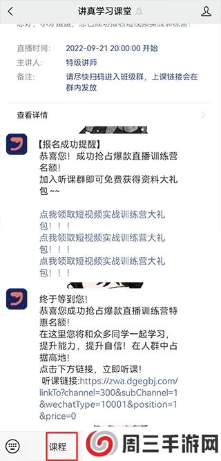 3、或者在微信中添加讲真学习课堂,点击课程