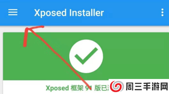 7、点击打开框架里第三个APP "Xposed Installer";打开后点击首页左上角的菜单按钮。