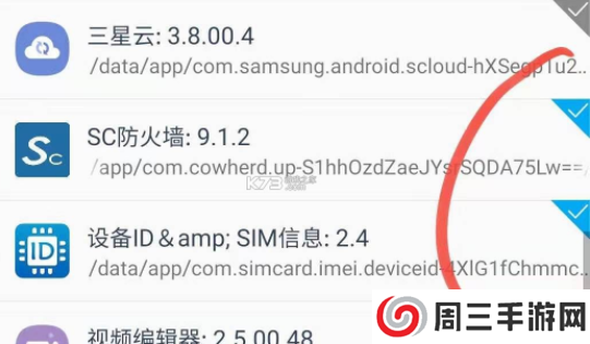 4、在随后弹出的程序列表页面中,同时勾选中 "SC防火墙" 和要配合使用的三方app,然后点击底部安装按钮。