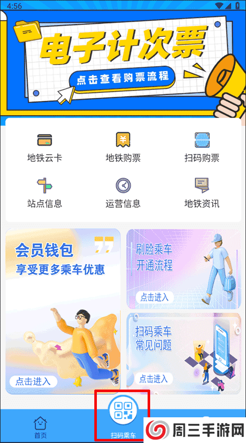 1、首先,在本站下载好软件后打开软件,在首页找到并点击“扫码乘车”选项;
