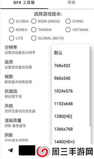 3、GFX Tool除了可以调画质,还可以调分辨率,在“分辨率”一项你可以选择游戏分辨率,从最低的“960×540”到最高的“2560×1440”2K分辨率都可以选择。