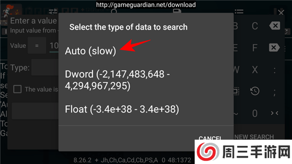 7、或者可以选择Auto 让GG 修改器自己搜寻游戏内可以修改的参数。