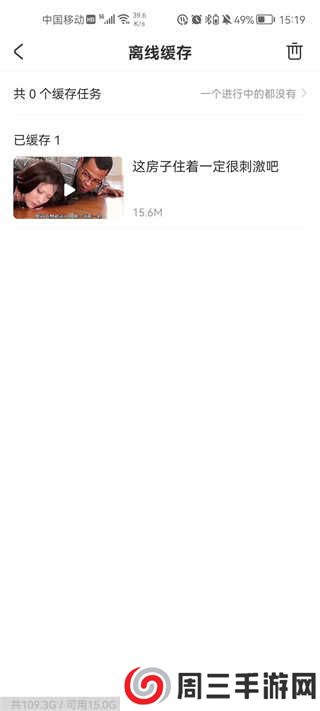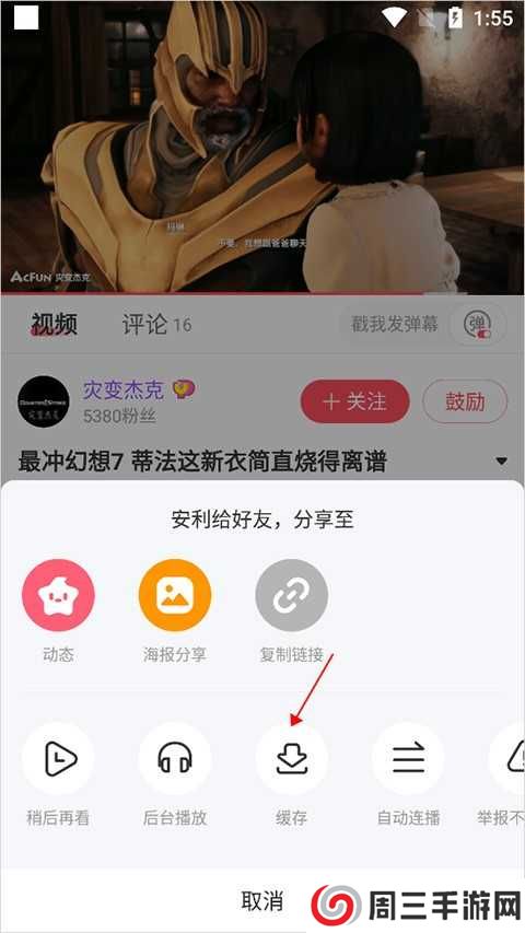 3.点击后,能看到顶部右边有三个小点图标,点击打开可以看到缓存选项,点击缓存。