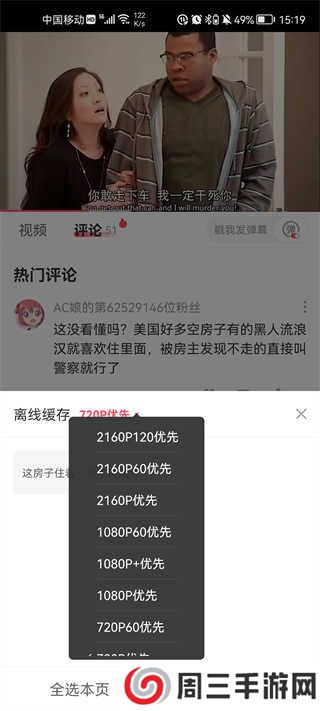 5.选择好清晰度后,点击底部右下角的离线,就可以缓存视频了。
