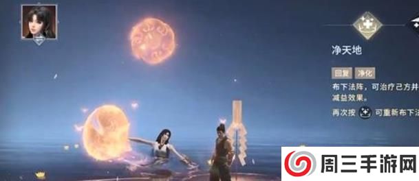 大招1释放一个回复法阵,在法阵内的友方会持续回复体力并清除所有减益效果,溢出的体力会变为护甲,胡桃再次释放可重新布下法阵