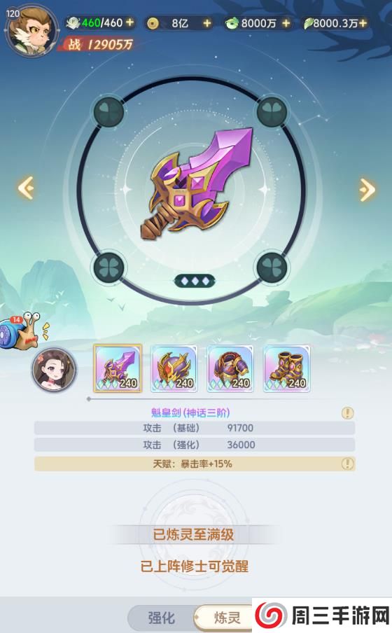 其次就是装备!通过强化、铸造、觉醒武器可以升级装备。装备强化达到指定条件后可激活对应功能的大师属性。