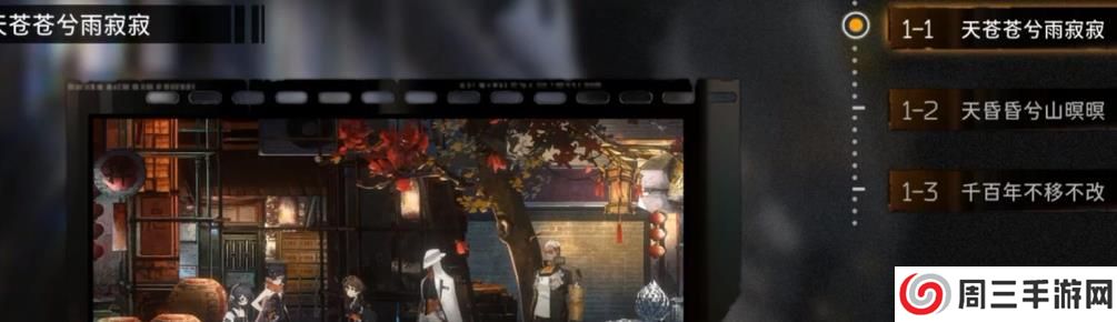 点击1-1天苍苍兮雨寂寂,如果想体验流畅剧情的玩家,可以勾选开始剧情旁边的跳过战斗,支线的对话就能完整进行。首先,开局调查到“狮傩”即将在黄昏时间出行,狮傩起舞的大觉之日,异常效应第2天就会消失,玩家可以在这里选择近距离观察或者亲眼见证狮傩。