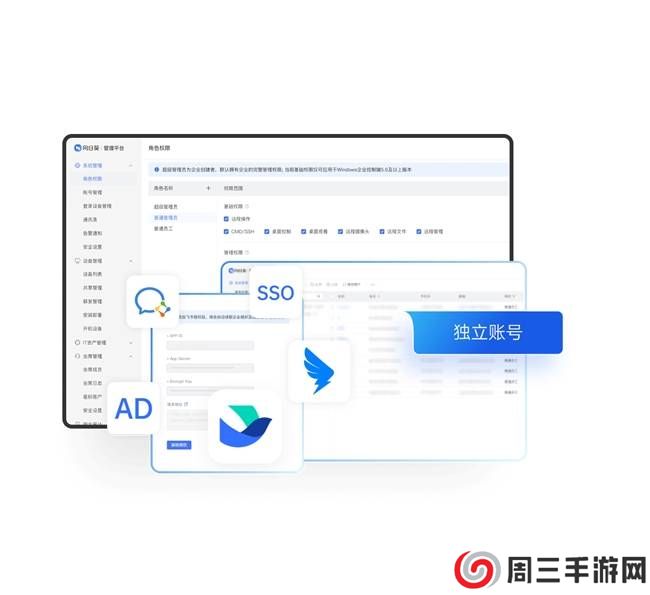 向日葵企业办公方案在部署方面非常简洁,仅需三步即可完成:创建组织架构与员工账号、软件安装、将设备授权给需要的员工。整个部署过程高效便捷,一般可在1小时左右完成。如果企业已经拥有完善的IM系统,向日葵还支持对接第三方IM账号(如企微、钉钉、飞书),员工可扫码一键登录,甚至支持AD域接入,实现与现有组织架构的自动同步,大大减轻了管理员的操作负担。