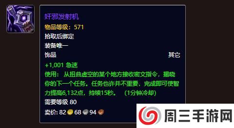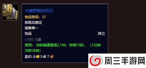 提供一个较为常规的主动触发精通饰品,冷却时间为1分30秒,提供适量的精通增益。