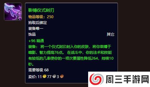 这是一件优质的主动饰品,提供精通增益,并在击败敌人后进一步增加精通,非常适合多人副本和需要击杀小怪的战斗。