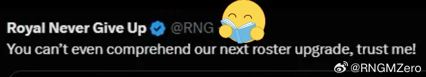 并嘲讽了RNG俱乐部官方在推特上的发文:“You can’t even comprehend our next roster upgrade, trust me!”(相信我,你根本无法理解我们下一次的阵容大名单升级! )