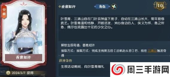 方法:生辰期间向叶雪青赠送礼物即可获得对应说英雄卡触发奇遇,根据卡片在三清山624.430找叶雪青接任务,3月21日更新后会有好感度要求。揉制香团的时候根据当前提示按1213。