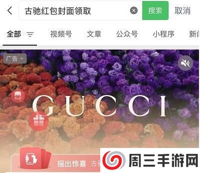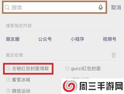 1、首先进入微信,再输入红包名,比如“古驰红包封面领取”。