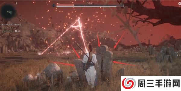 2、对准树藤,使用弓箭-火箭。