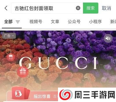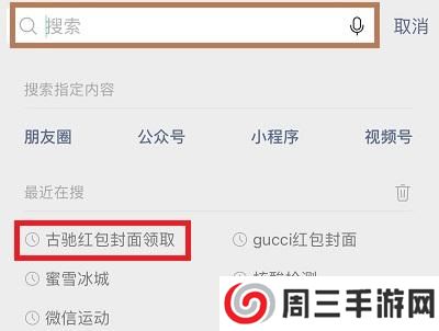 1、大家先进入微信,然后输入红包名,比如“古驰红包封面领取”。
