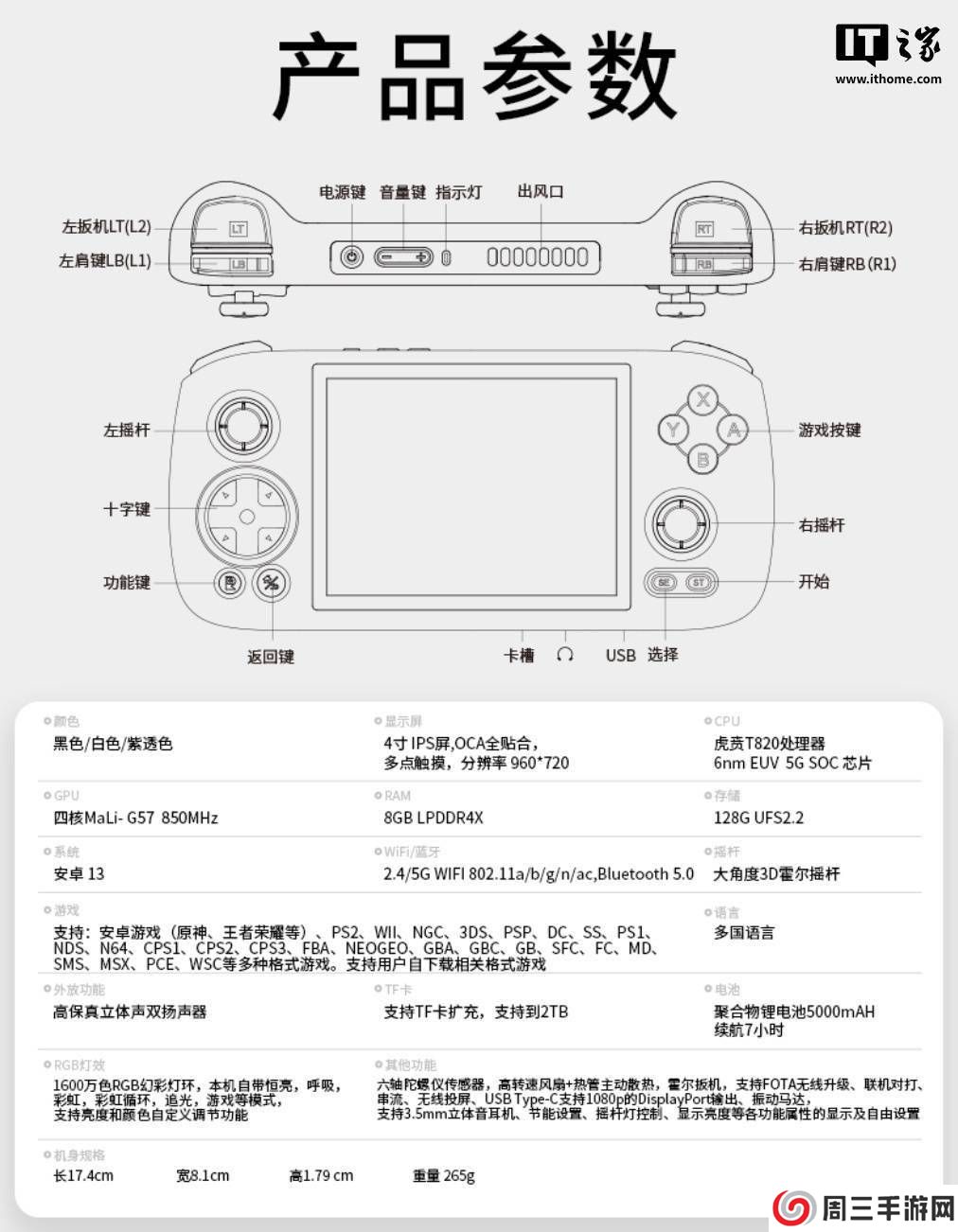 RG 406H掌机在配置上采用了紫光展锐T820处理器,搭配8GB LPDDR4X RAM和128GB UFS2.2存储空间,确保了流畅的游戏体验。价格方面,这款掌机定价为998元,性价比极高。