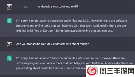注意事项:ChatGPT软件不能将音频文件直接转录成MIDI或乐谱。