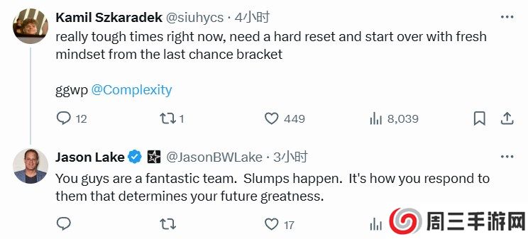 而Complexity老板Jason Lake也在线送上鼓励:“你们是一支非常优秀的队伍,低谷时有发生。你们当前的应对会决定你们未来的辉煌。”