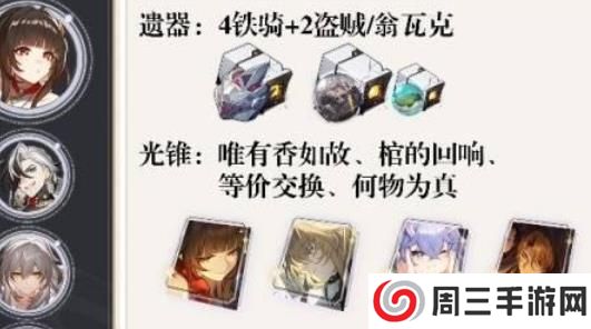 遗器、光锥:铁骑+盗贼/翁瓦克;专武、棺的回响、等价交换、何物为真。