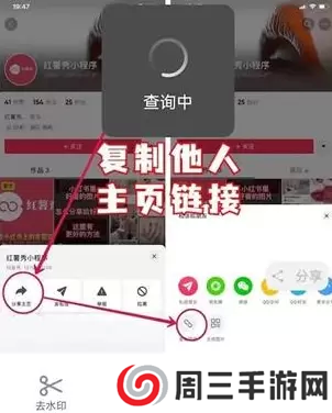 2、进入之后,用户找到需要查询的个人都有账号。在把对方个人账号中作品链接复制出来;