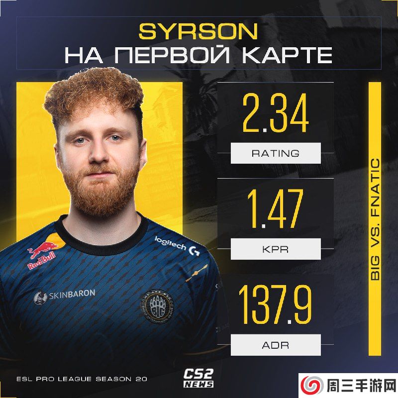 fnatic的比赛中,德国狙击手syrsoN在图一Anubis打出25-6 K-D、137.9 ADR和2.34 rating,刷新了自己在CS新版本赛事的最佳单图数据记录。