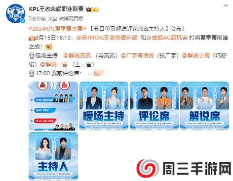 2024KPL夏季赛决赛【节目单及解说评论席&主持人】公布!