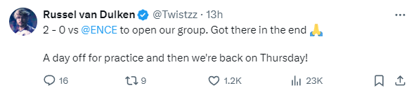 赛后,Liquid战队队员Twistzz在个人社交平台上表达了自己对于比赛的看法。