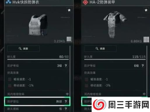 首先来介绍护甲,护甲拥有不同的防护等级,等级越高对于子弹的防护效果也就越好,同等级的护甲还有不同的样子,比方说防护面积小、耐久低的轻甲,和防护面积大,耐久高的重甲。