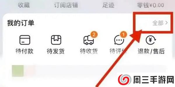 1、打开淘宝,点击我的淘宝,点击我的订单右侧的全部。