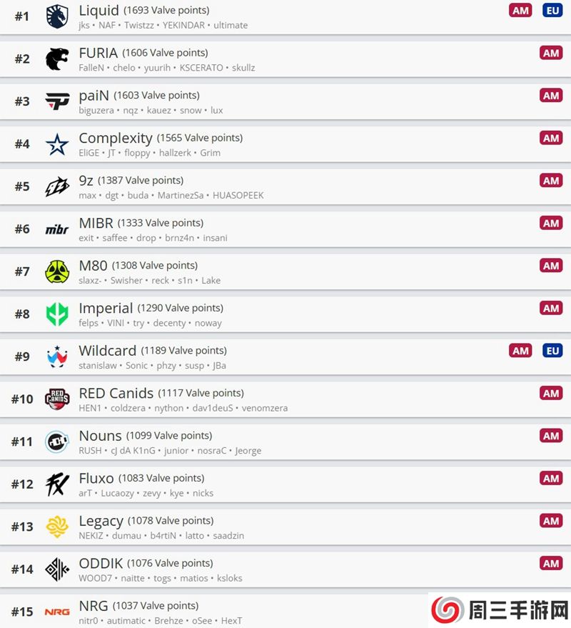 Complexity则位列12名。以前稳定的Top10级别队伍