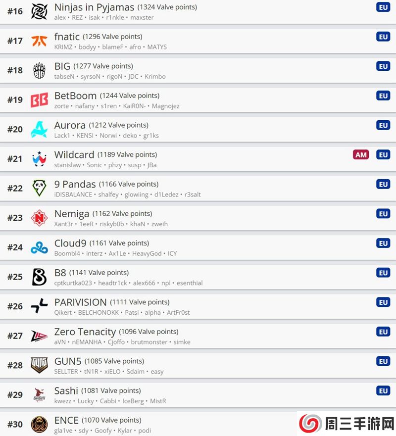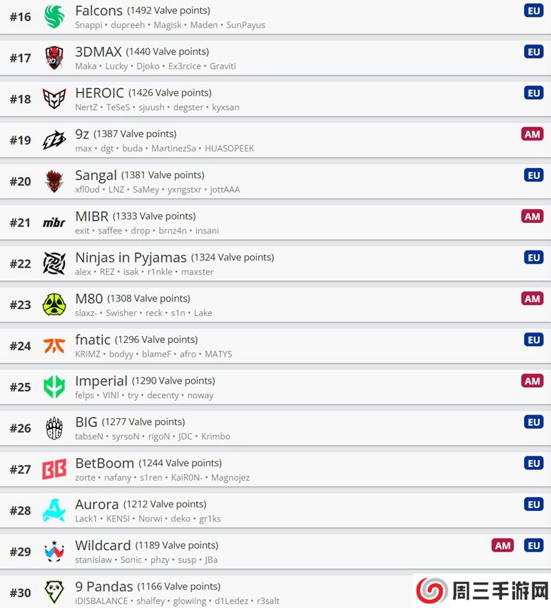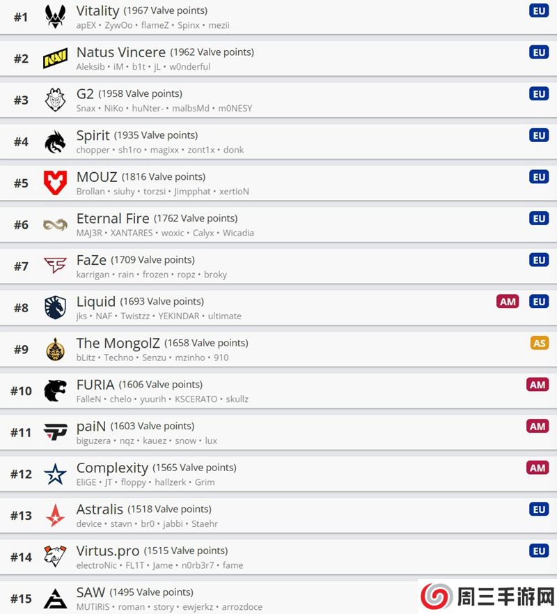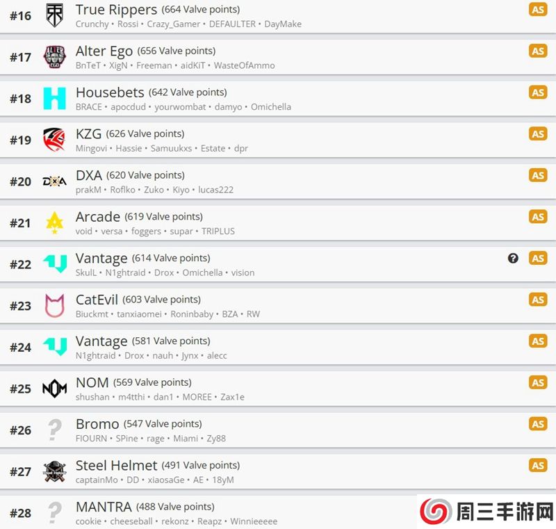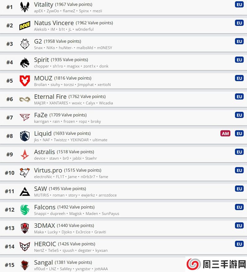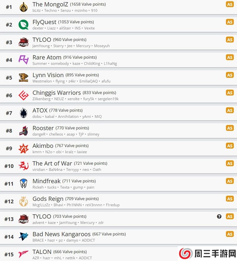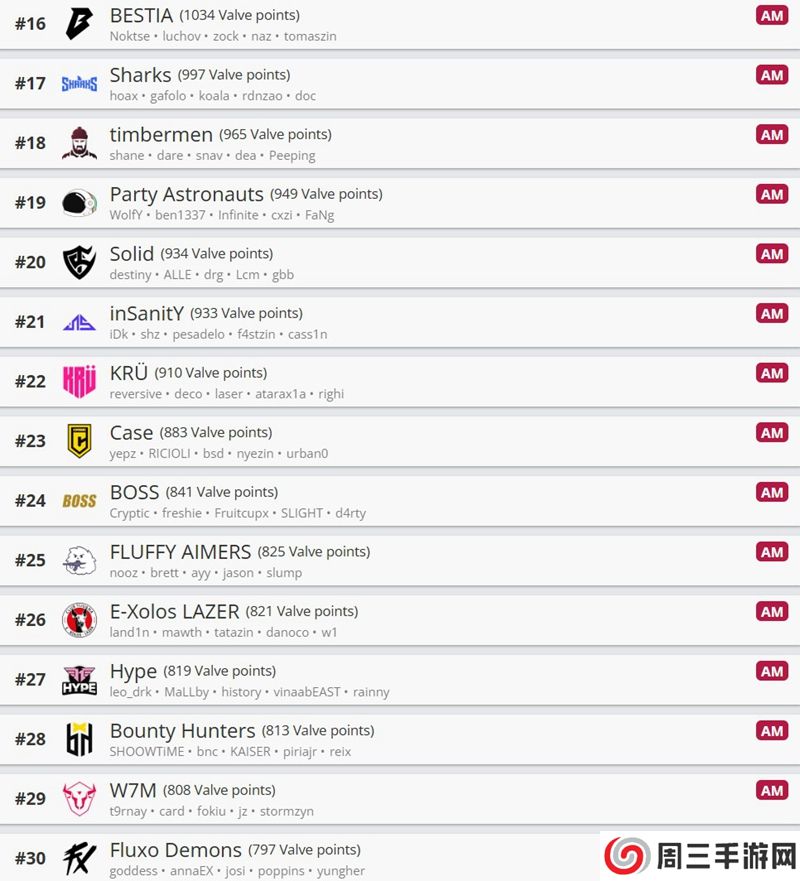 Virtus.pro现在位列14名。和他们同属难兄难弟的还有
