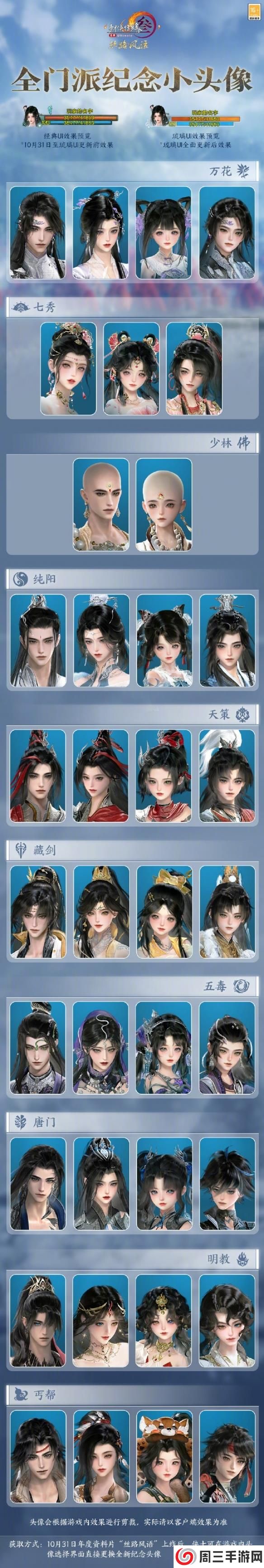 剑网3将在丝路风语版本上线全新的门派纪念头像,很多玩家都想知道纪念小头像长什么样,官方对每个门派的小头像都进行了充值,且门派头像无需积分兑换,接下来本站小编给大家带来了详细的《剑网3》丝路风语全门派纪念小头像展示。