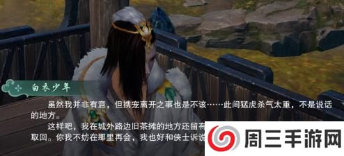 4、当玩家来到南天围场,找到白衣少年与其互动后即可获得