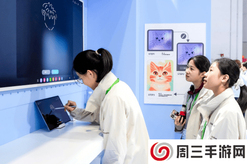 在三星展台的机器人极限挑战区,一款名为“OLED Bot”的机器人成为了学生们关注的焦点。它操控着两台机械臂,对最新发布的三星W25系列手机进行了一系列严苛的测试,包括刷、折、刮、浸等动作。当看到手机折叠屏屏幕在经历了这些测试后依然完好无损时,学生们发出了阵阵惊叹。STEM GIRLS项目的郑欣宇等同学更是与“OLED Bot”进行了亲密互动,亲身体验了科技的神奇与无限可能。