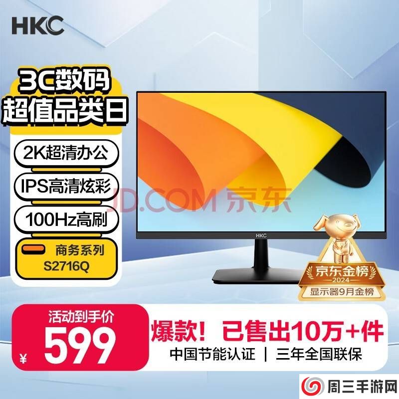 HKC近期发布了一款全新的27英寸显示器——S2716Q,这款显示器以“2K 100Hz”的规格吸引了众多消费者的目光,而其价格依旧亲民,保持在599元。与今年4月推出的版本相比,S2716Q在刷新率
