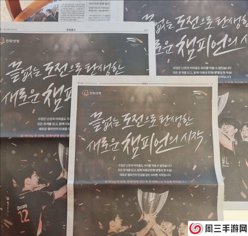 直播吧9月13日讯 LCK夏季赛决赛HLE击败GEN夺得冠军,随后有韩国网友发现,HLE老板在夺冠后在豪掷2-4亿韩元(折合人民币约107万-214万元),在四家报纸上刊登HLE夺冠报道。作为参考《综
