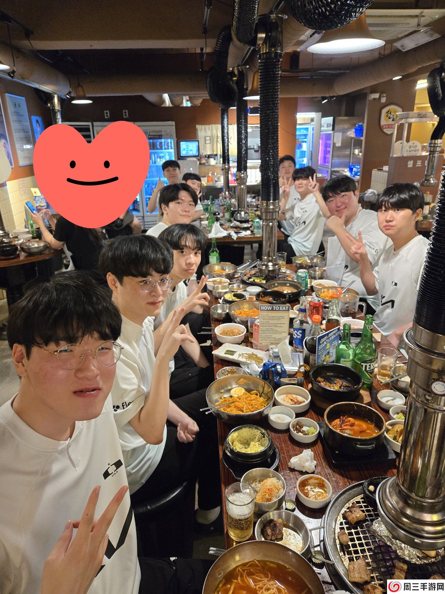 直播吧09月13日讯 在昨晚的LCK冒泡赛中,DK苦战五局3:2战胜T1,成功以LCK三号种子的身份晋级S14全球总决赛。DK俱乐部COO在社交媒体X上分享庆功宴照片,五名首发+替补正在对着镜头比✌。