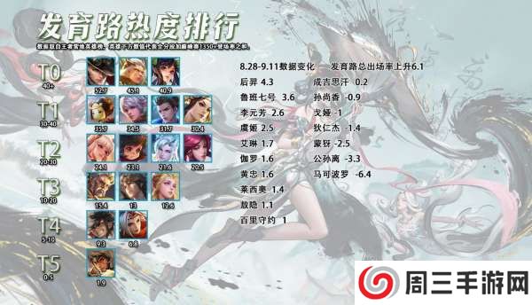五路的热度排行可能后续每个星期做一遍,让大家时刻能够感受到版本的变化,然后再结合上一个星期的数据给出一个数据变化具体数值。注:热度排行全看官方数据,不掺杂个人因素,除非数据统计计算出错,不然不存在瞎排