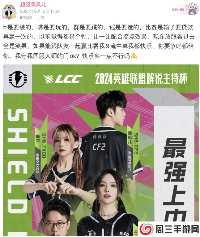 直播吧9月12日讯近日LPL解说杯火热进行中,而微笑队中单王淞在复盘中直言赵志铭队乘风儿是三流中单,赵志铭帮了乘风儿三波也没用。随后乘风儿发布长文反击,众解说火速赶往评论区进行“站队”。