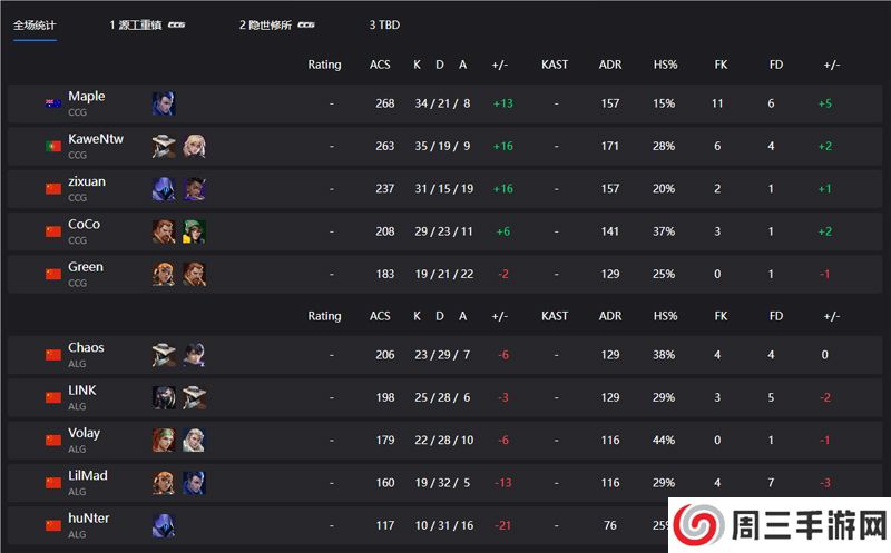 VCT CN联赛晋升赛小组赛阶段,B组第一轮,CCG直落两盘击败了对手ALG,取得了开门红。图一源工重镇,CCG 13:6 ALG,图二隐世修所,CCG打出了更加恐怖的碾压分差,CCG 13:3 AL
