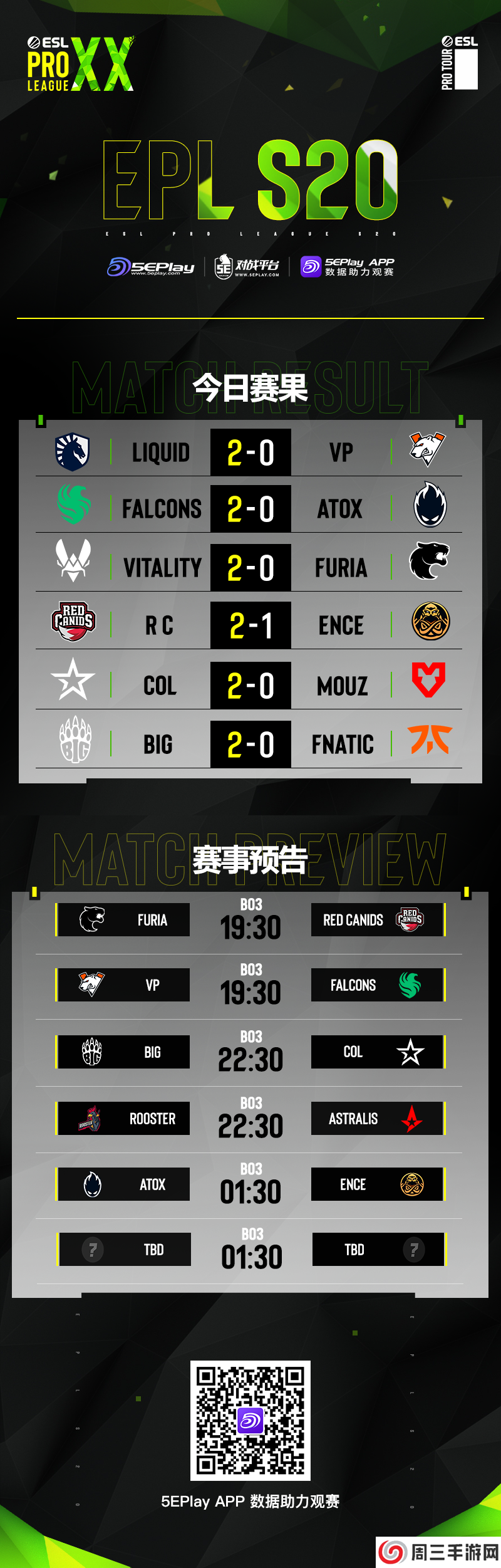 EPL S20 小组赛:实力压制 Vitality 2-0轻取FURIAEPL S20 小组赛 Vitality对阵FURIA,两张图上Vitality都展现出巨大的实力压制,以2-0横扫拿下胜利。E