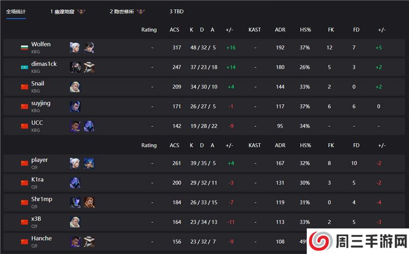 VCT CN联赛晋升赛小组赛阶段,B组第一轮,KBG直落两盘击败了对手情久俱乐部,取得了开门红。图一幽邃地窟,KBG 13:10 Q9,图二隐世修所,KBG 13:6 Q9。纵观全场比赛,KBG的决斗
