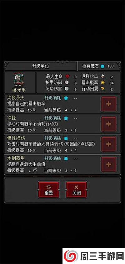 2. 投矛手:自带60%的暴击率加成,而且圣物能额外提升暴击伤害和暴击率。虽然投矛手只有2点行动力,但是伤害很高,一般用来固定炮台。