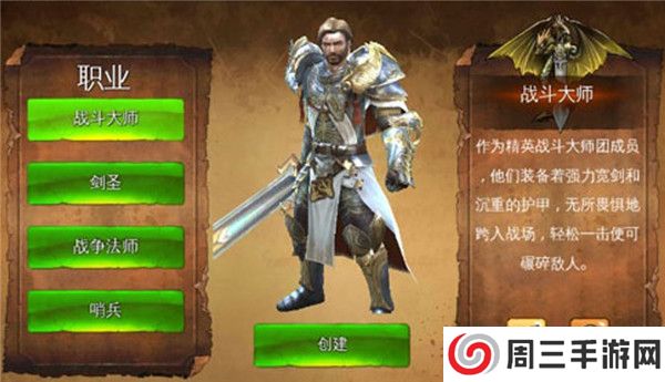 3.游戏内提供了四种各有千秋的职业供玩家选择游玩,分别是战斗大师、剑圣、战斗法师以及远程弓箭手