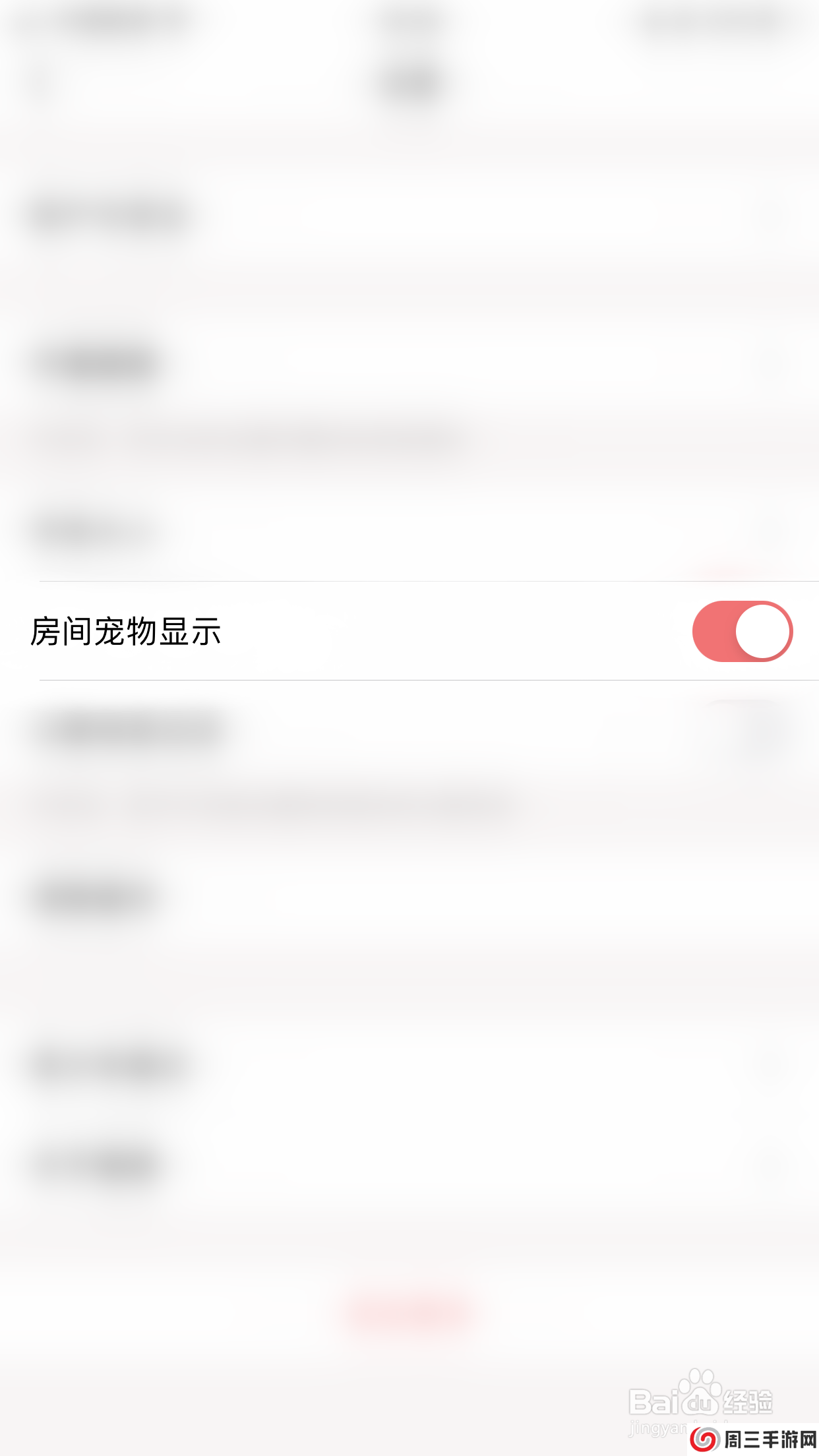 “房间宠物显示”后面的圆点变为红色即表示喵播开启房间宠物显示成功