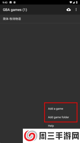 在My Boy模拟器中运行载入游戏非常的简单,首先我们需要先将gb/gbc/gba的三种格式的游戏rom文件导入到手机中,接着我们运行模拟器,点击右下角的【+】图标,选择【Adda game】导入单个游戏rom,你也可以选择【Addgame folder】来直接批量导入游戏文件夹。