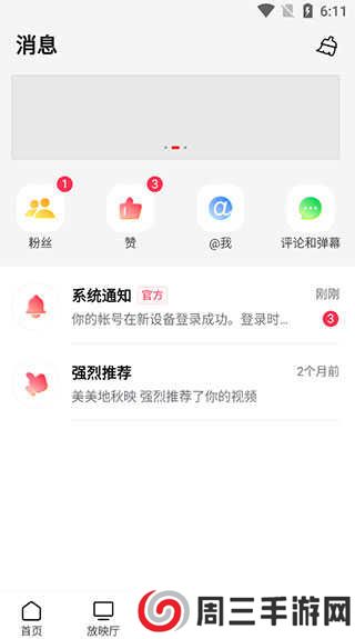 5、消息页面,可以查看消息、粉丝、点赞、@我、评论和弹幕;