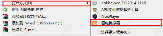 3、安装好安卓模拟器后,选中(qzsppj_156778.apk)右击雷电模拟器运行软件