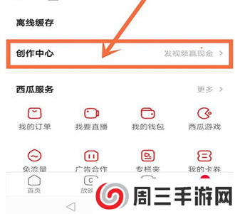 3、我们在个人主页这里可以发现“创作中心”字样,同时旁边有“发视频赢现金”的小字,点击它。