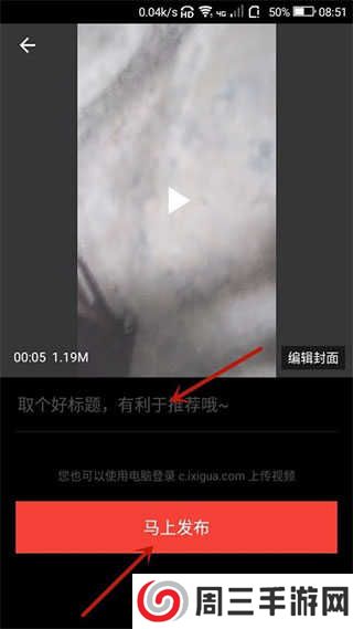 5、给视频取一个好听一点的标题有助于推荐,然后点击“马上发布”一段视频就完成拍摄并上传了。
